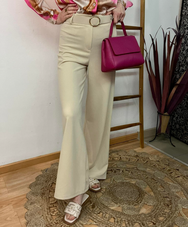 Pantalon fluide large sans poches avec ceinture à boucle avec tirette et bouton