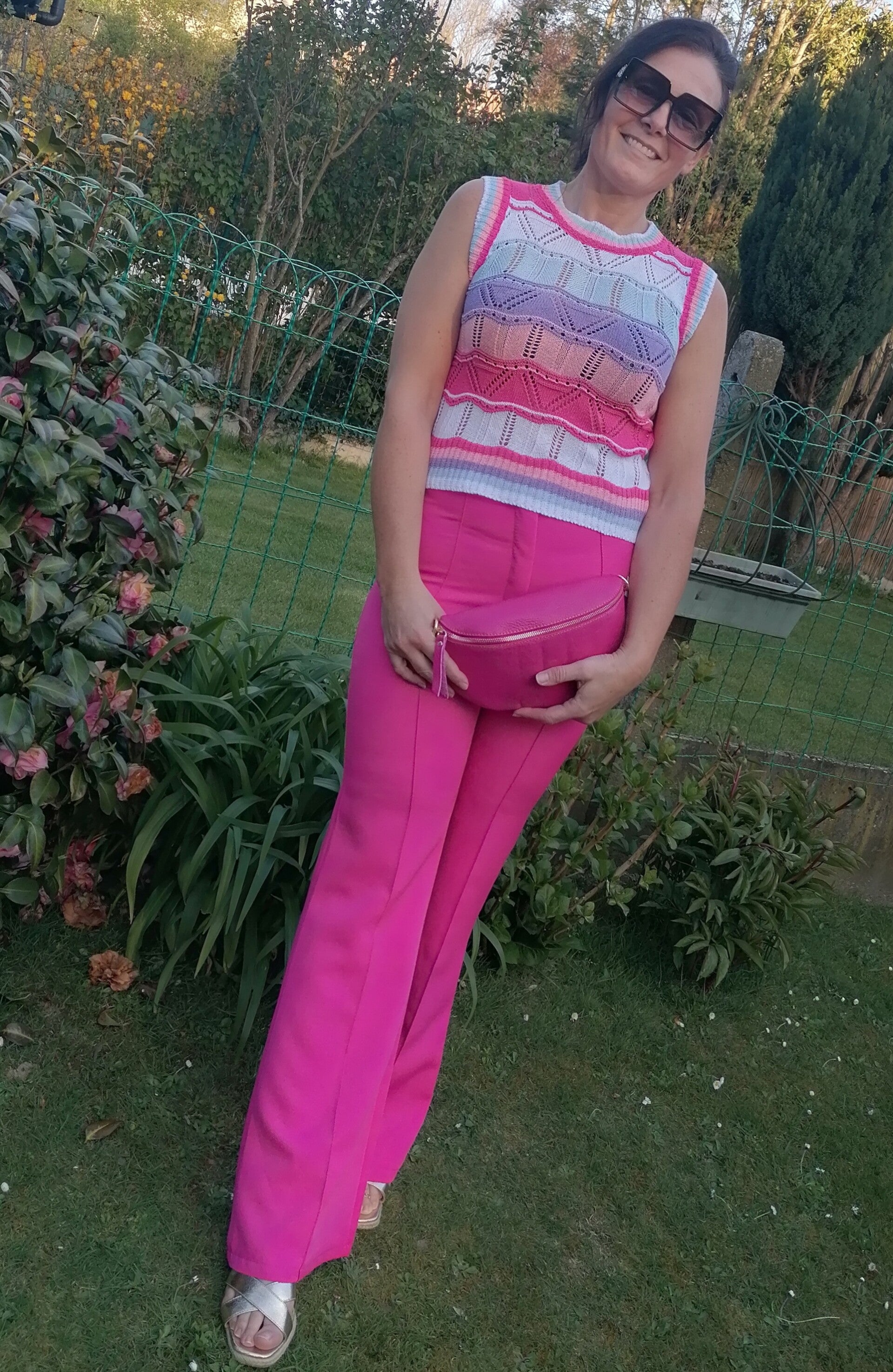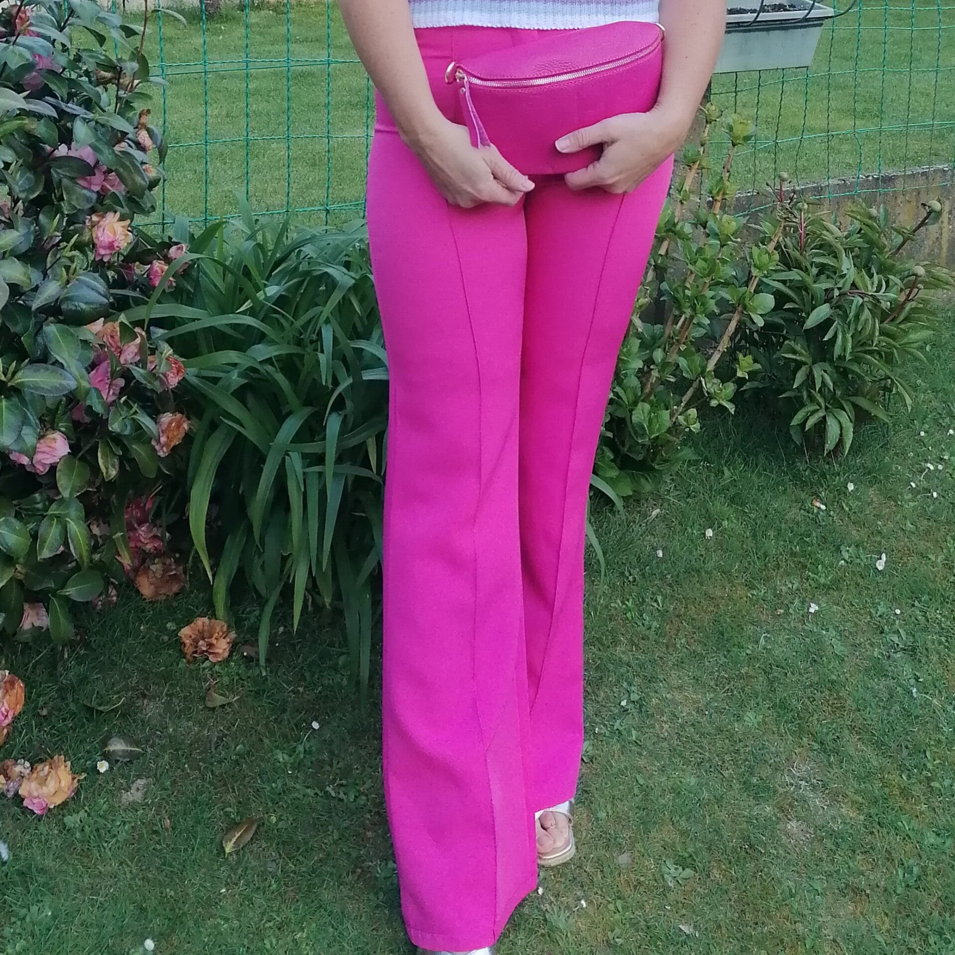 Pantalon fluide, jambes larges avec couture surpiquée milieu de la cuisse depuis la pince avant, très long.