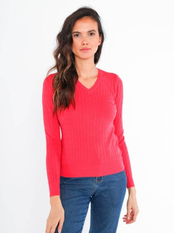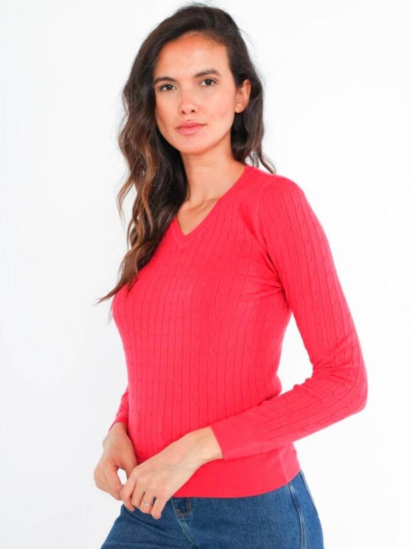 Pull doux et fin côtelé extensible col V.