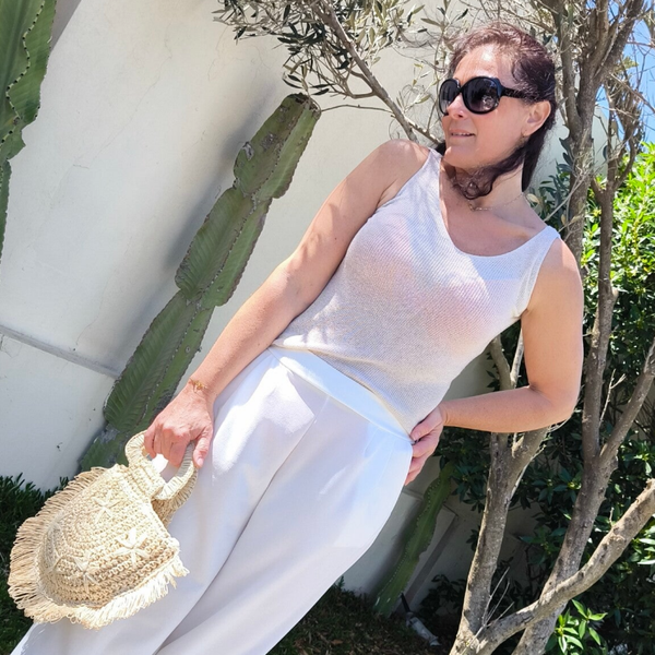 Top à bretelles brillant en lurex.