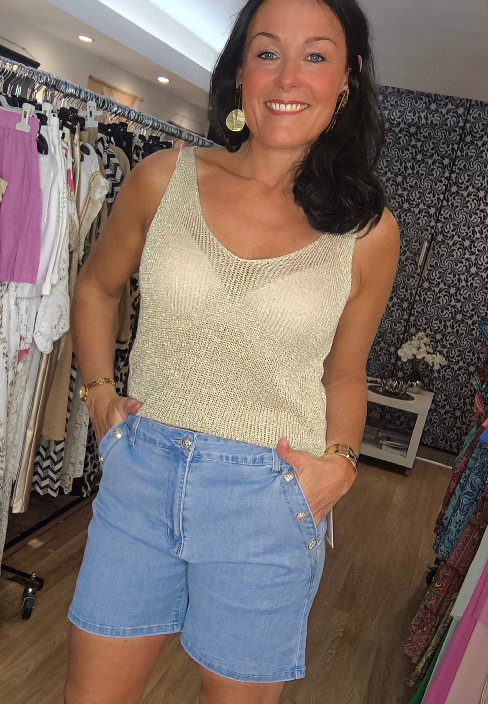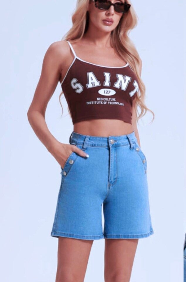 Short en jeans stretch poches côté et arrière, boutons Marins.