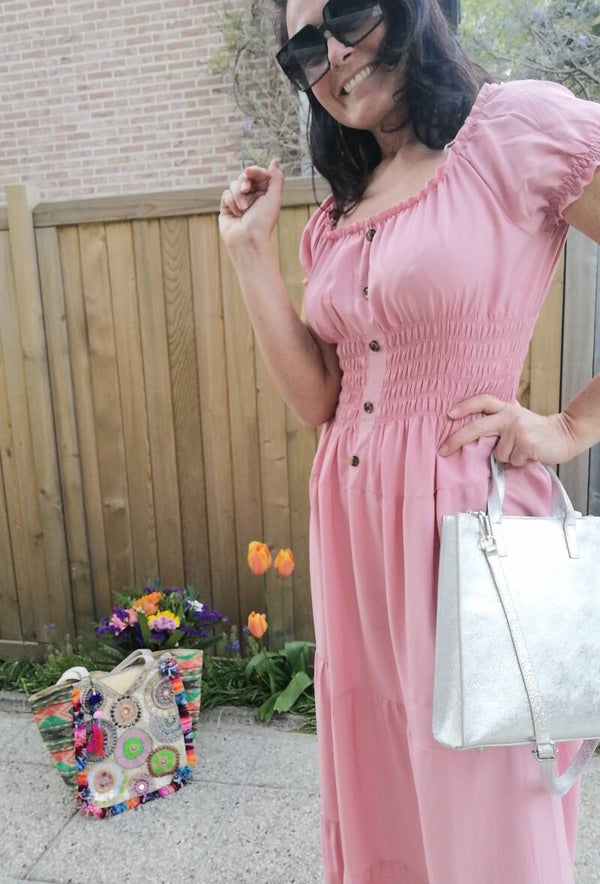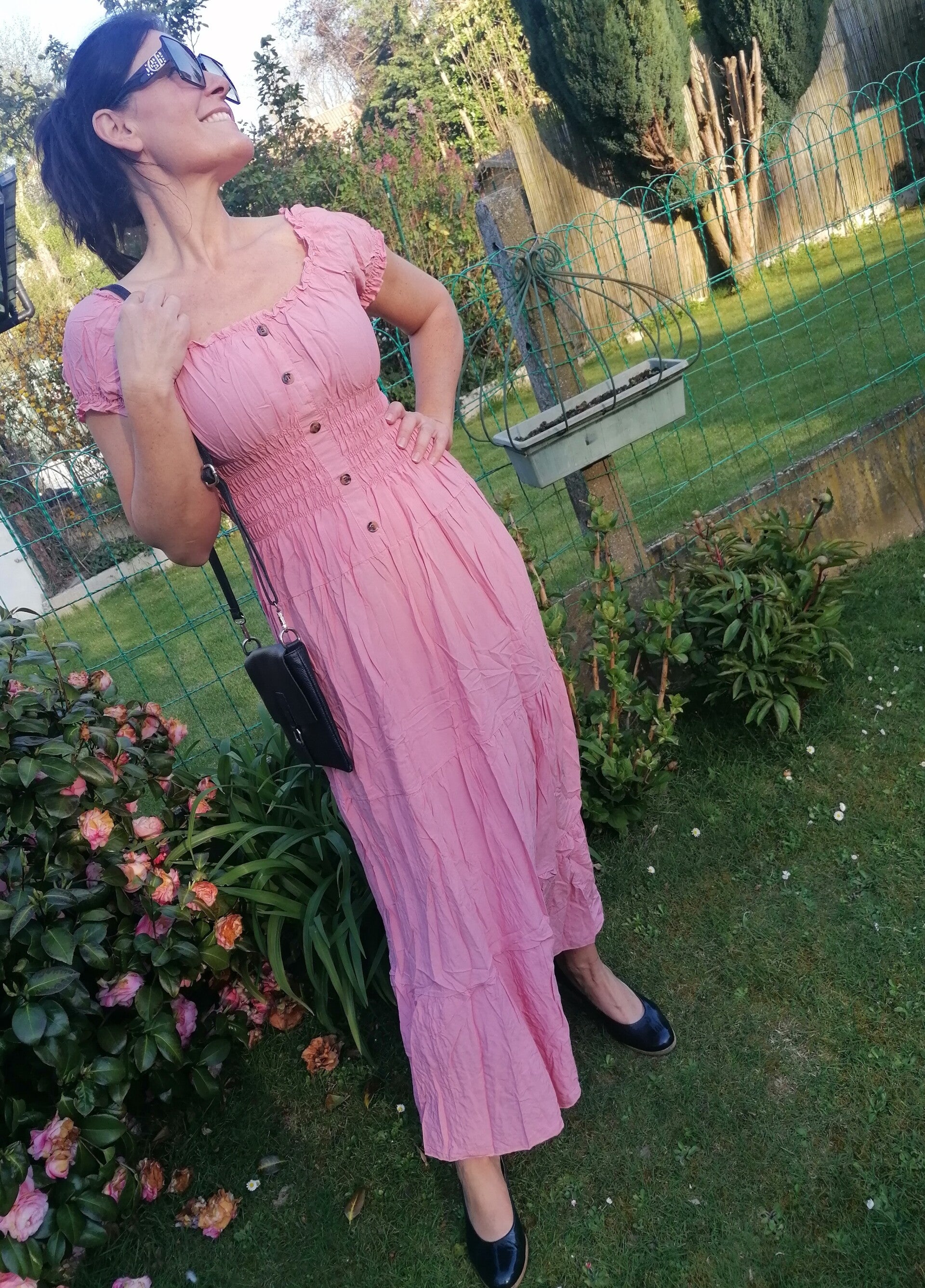 Robe légère unie smokée à la taille.