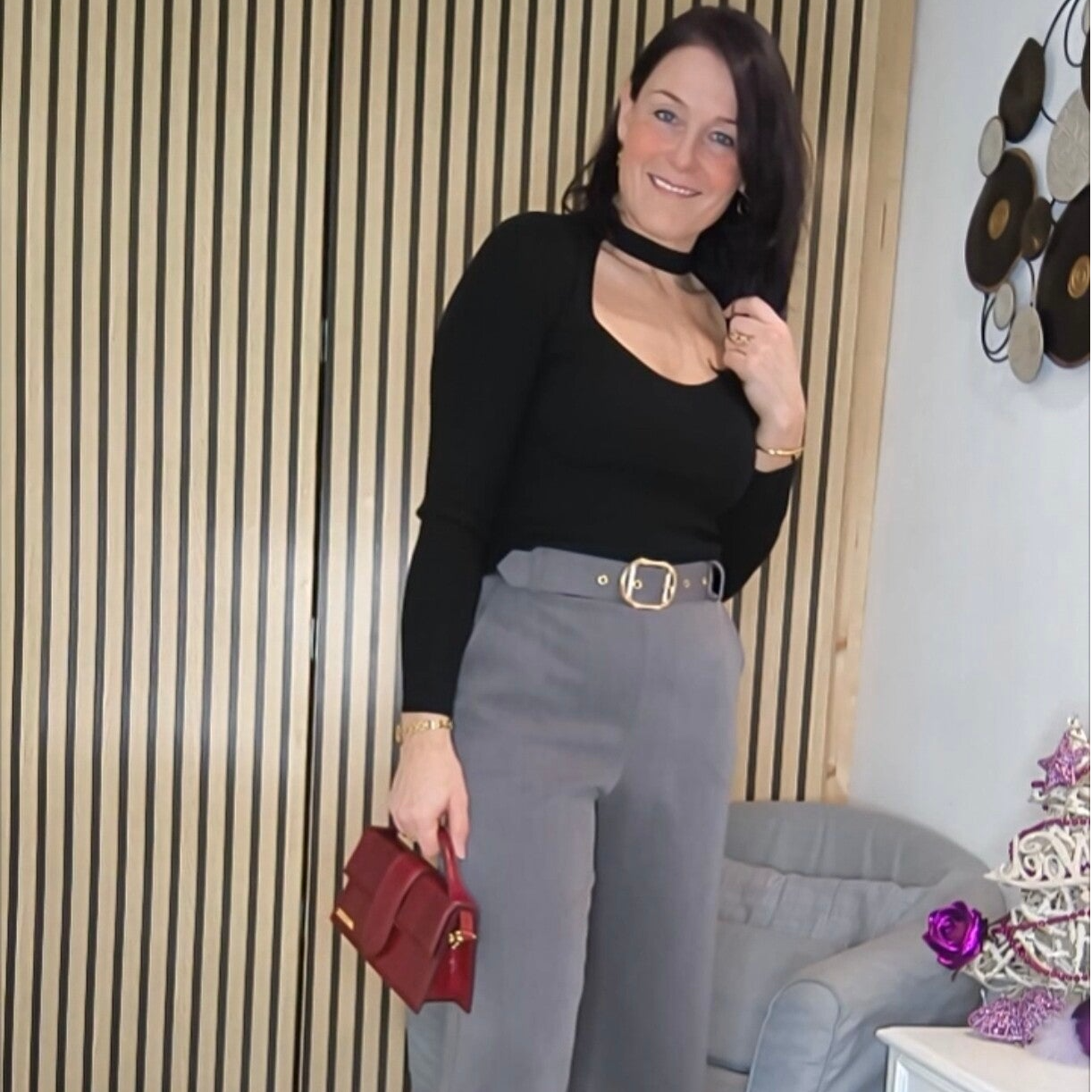 Top noir encolure sexy , fermeture cou zippée à l'arrière.
