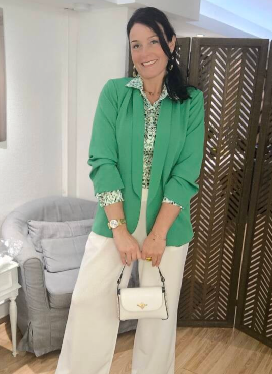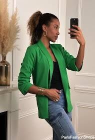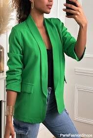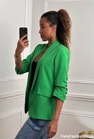 Blazer STYLE SMOKING fausses poches. Doublé. Manches retroussées.