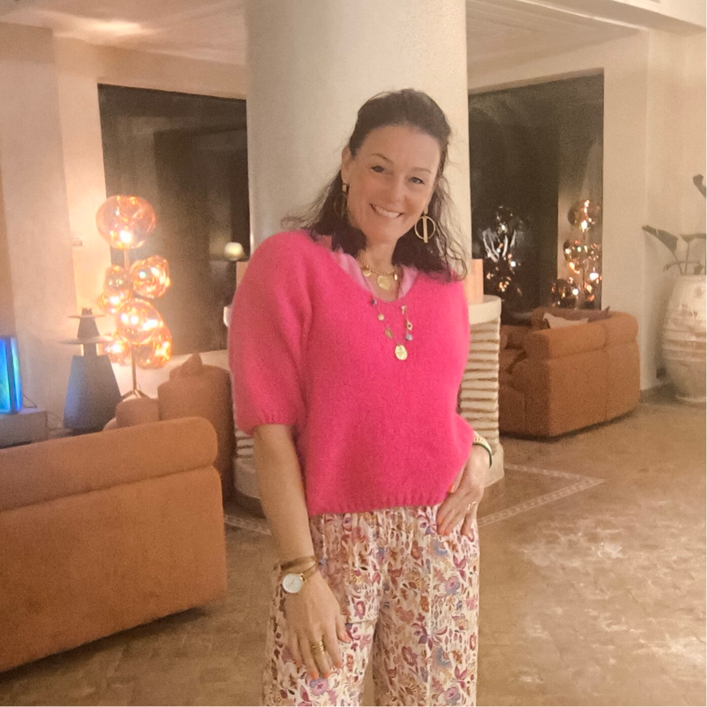 Pull en maille manches courtes, col v.