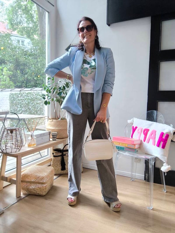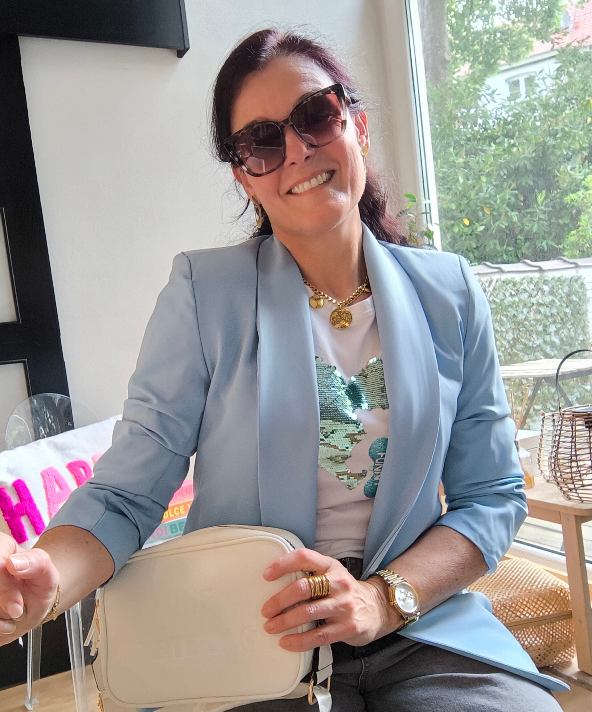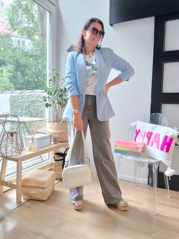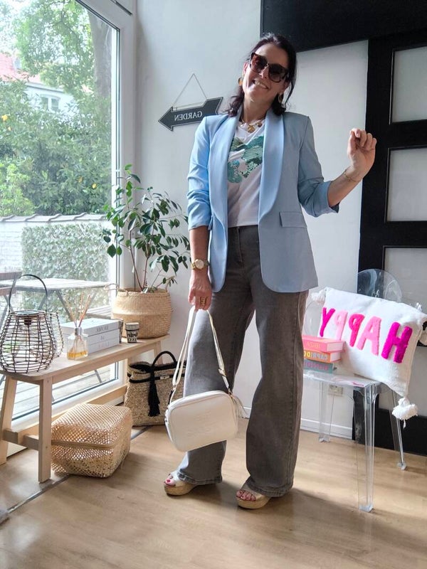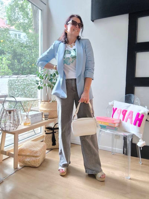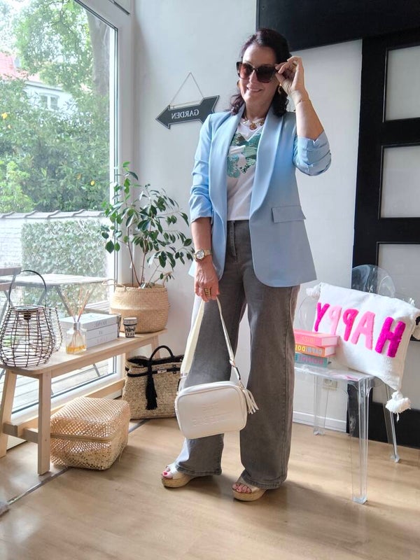 Blazer STYLE SMOKING fausses poches. Doublé. Manches retroussées.
