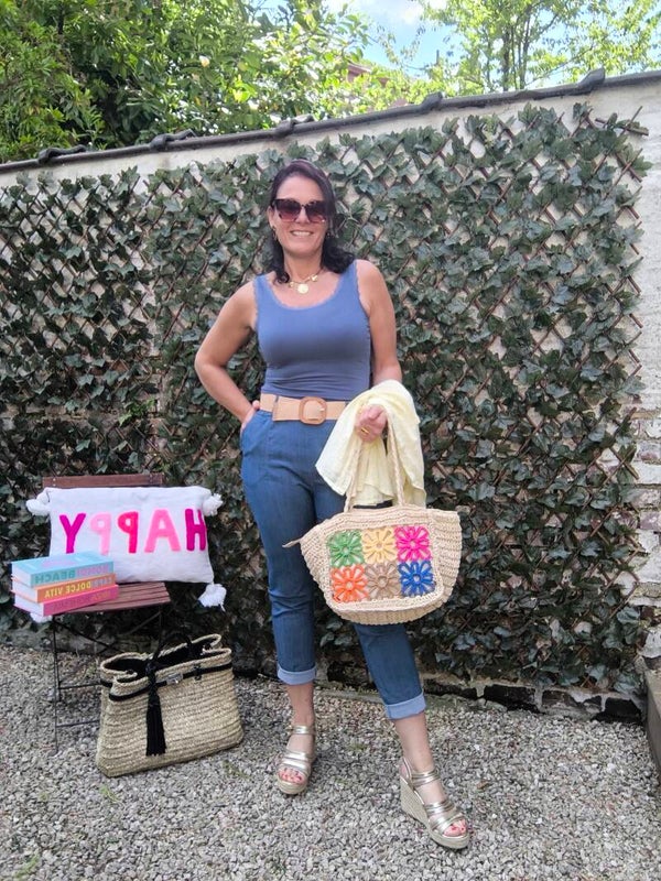 pantalon slim médium blue effet jeans, matière stretch avec ceinture élastique incluse