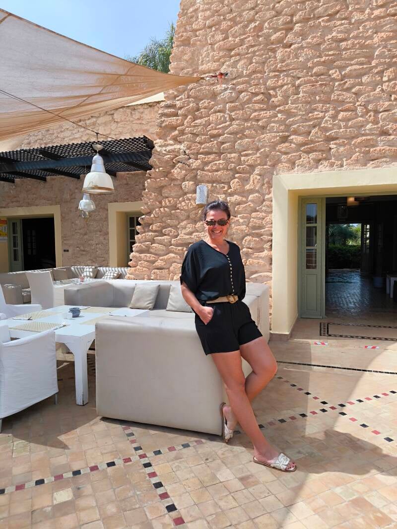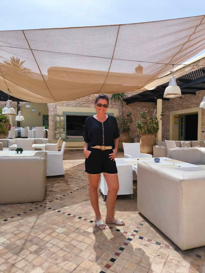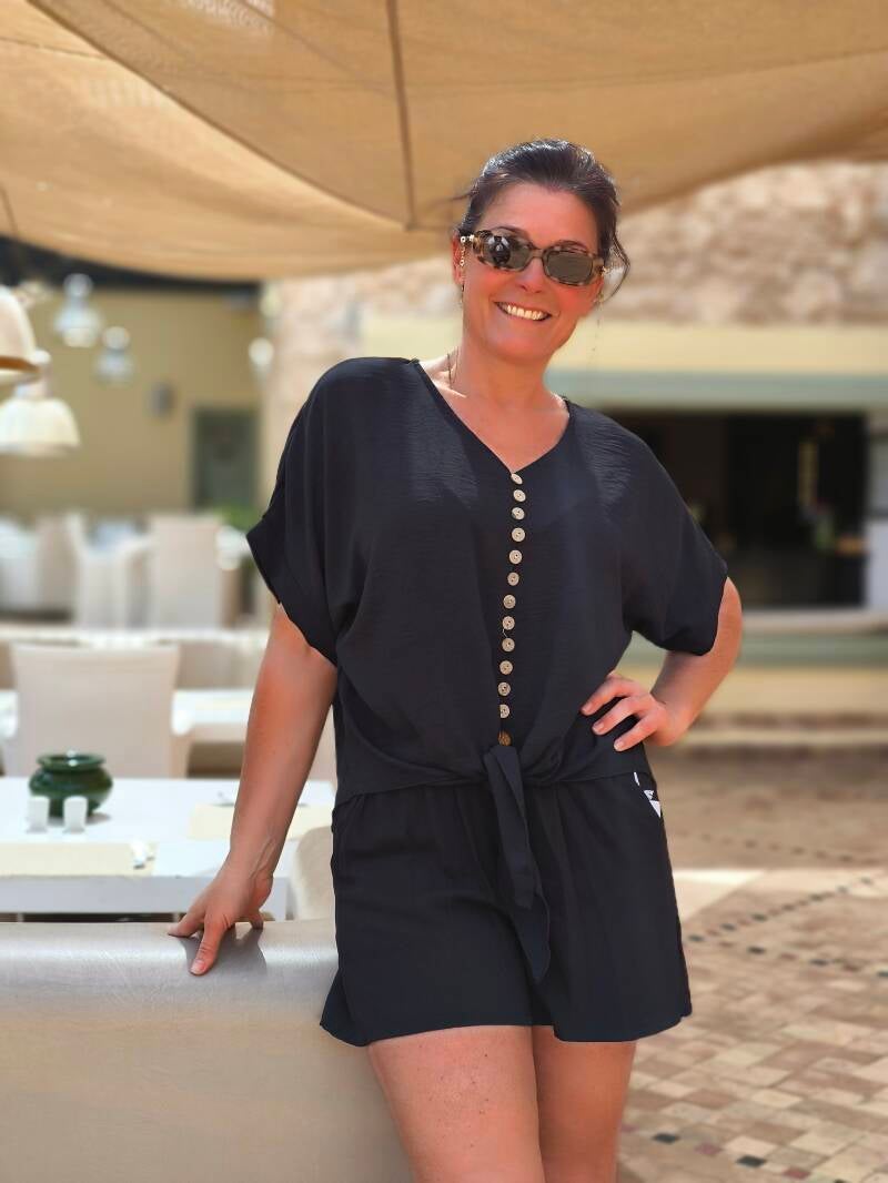 Blouse fluide boutons décoratifs et noeud à la taille.
