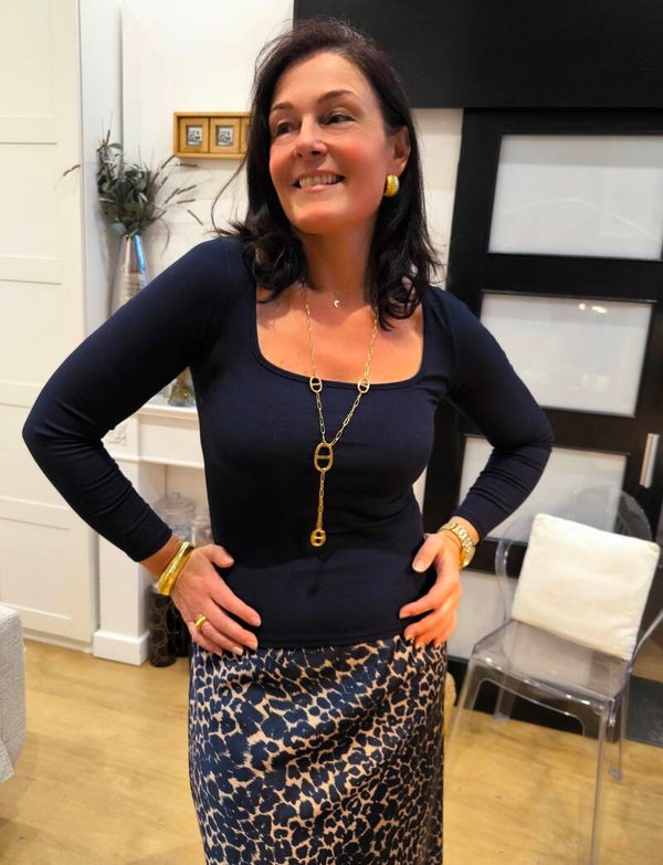 top matière t-shirt côtelé stretch avec grande encolure carrée.