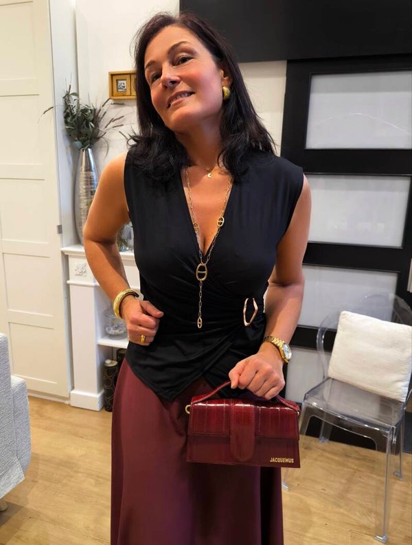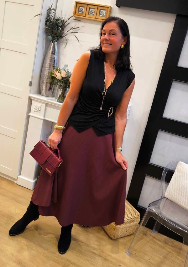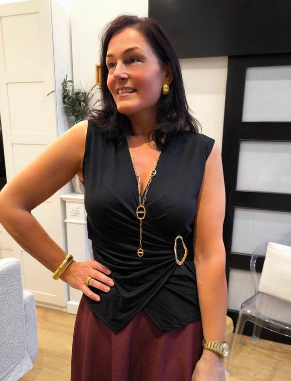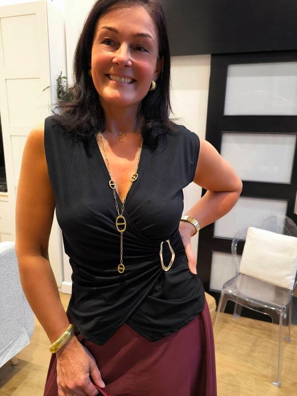 Top satiné cache-coeur stretch avec bijou sur le côté.