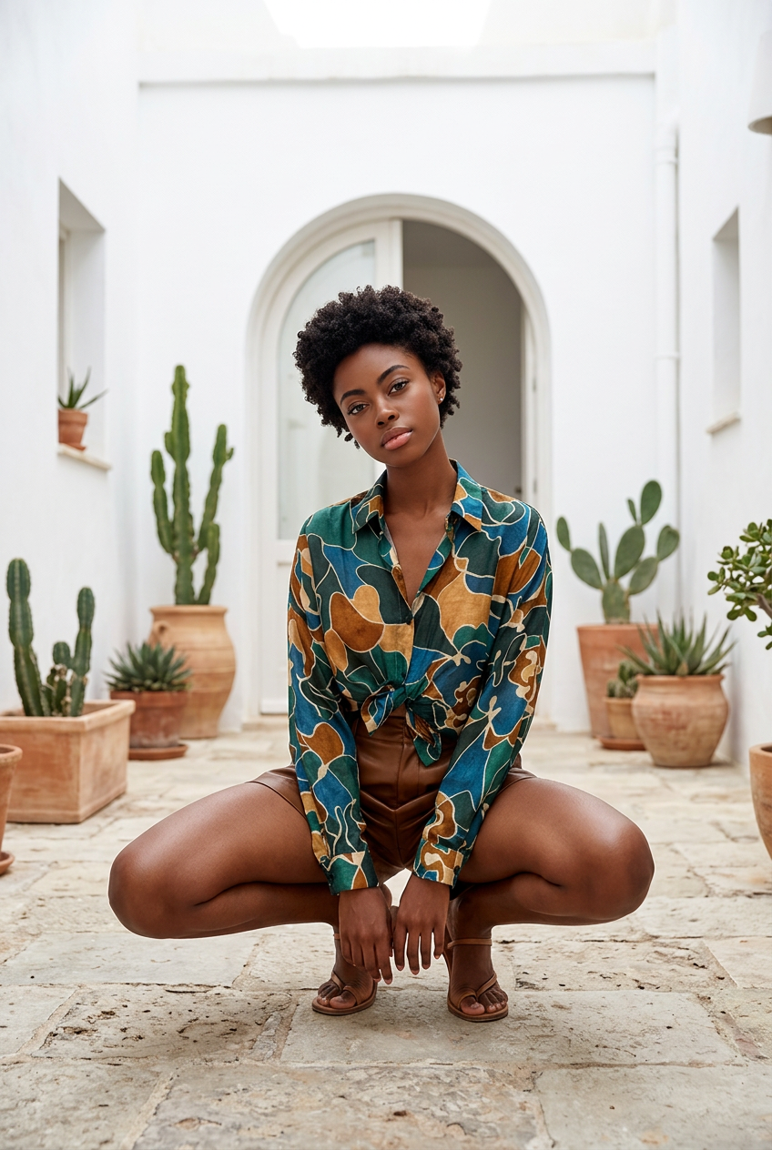 Jolie chemise fine en viscose et soie à nouer ou non.