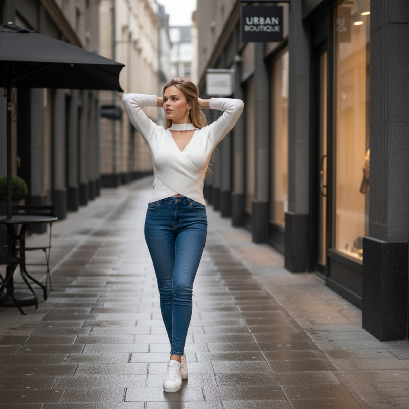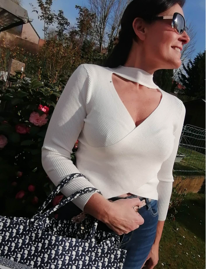 Pull côtelé stretch , cache-coeur.