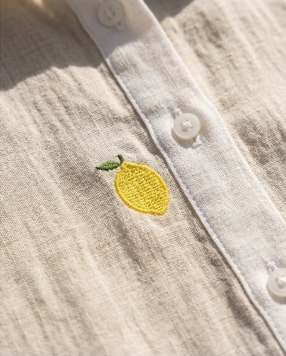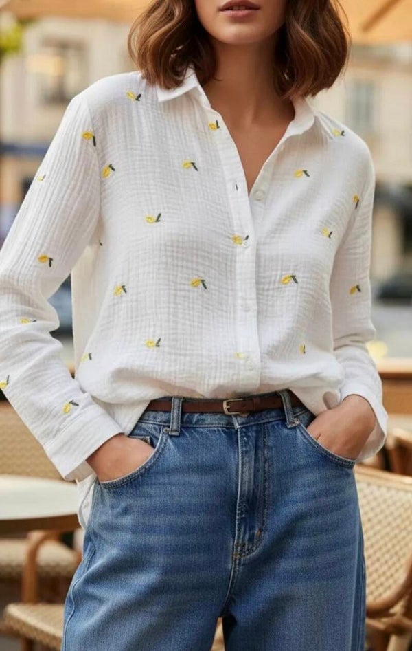 chemise en gaz de coton coupe légèrement oversize avec broderie citrons