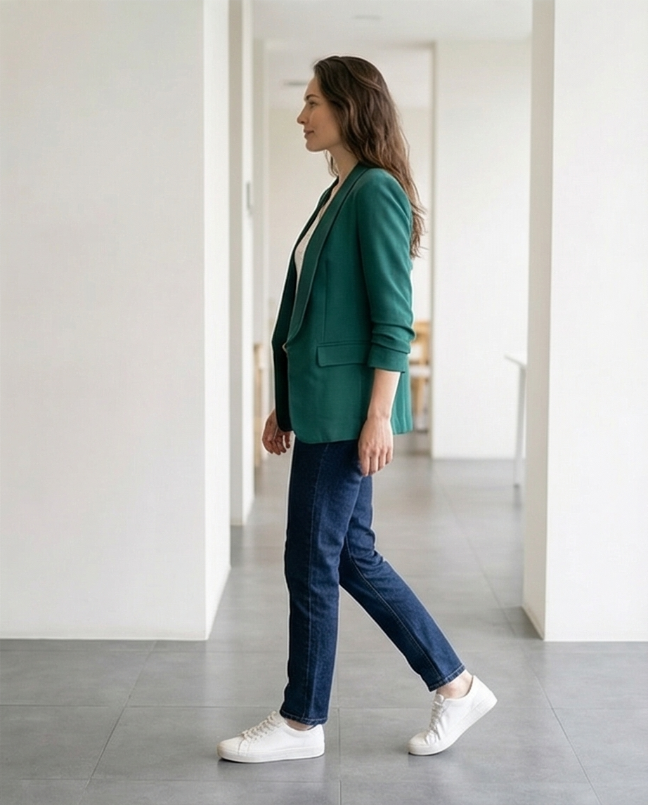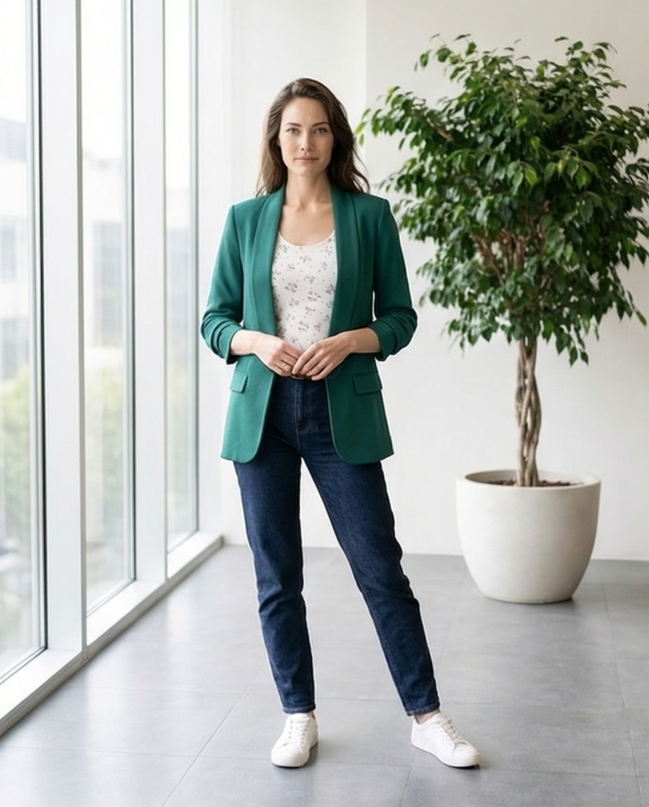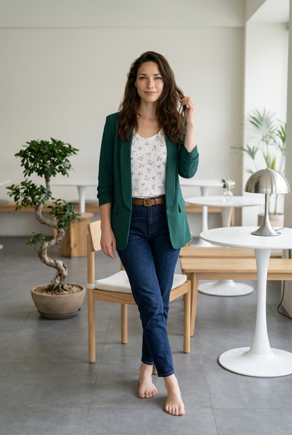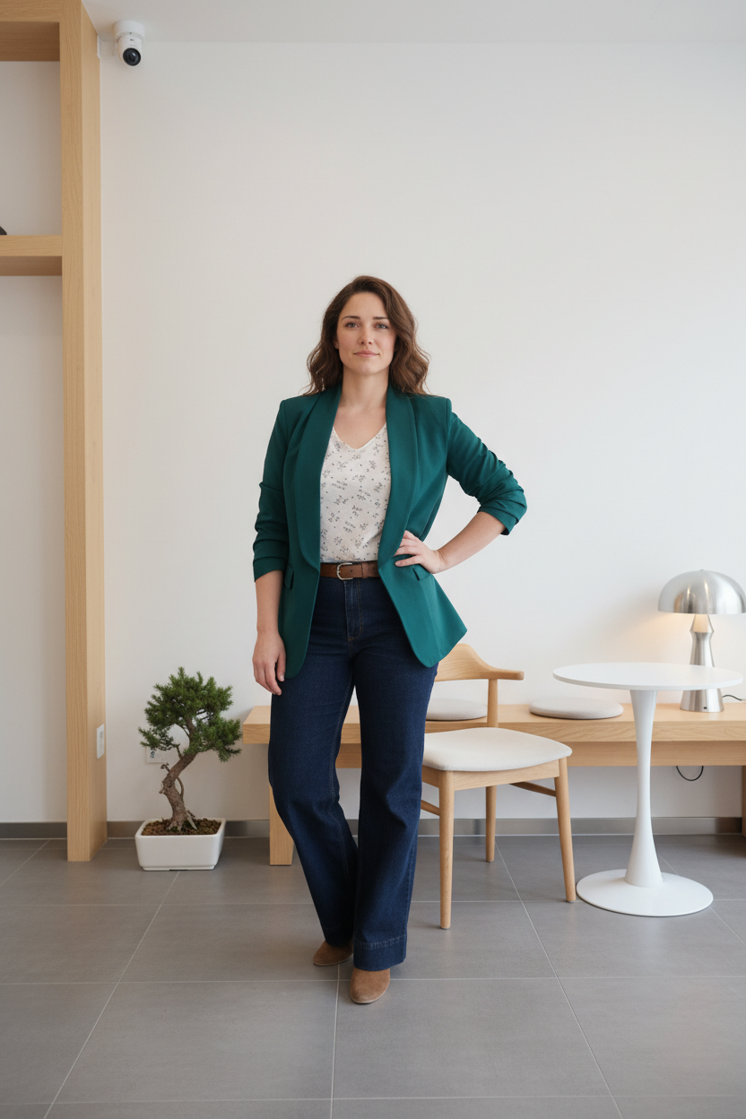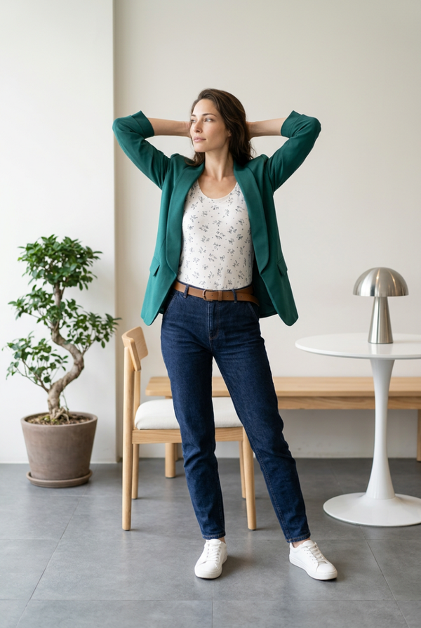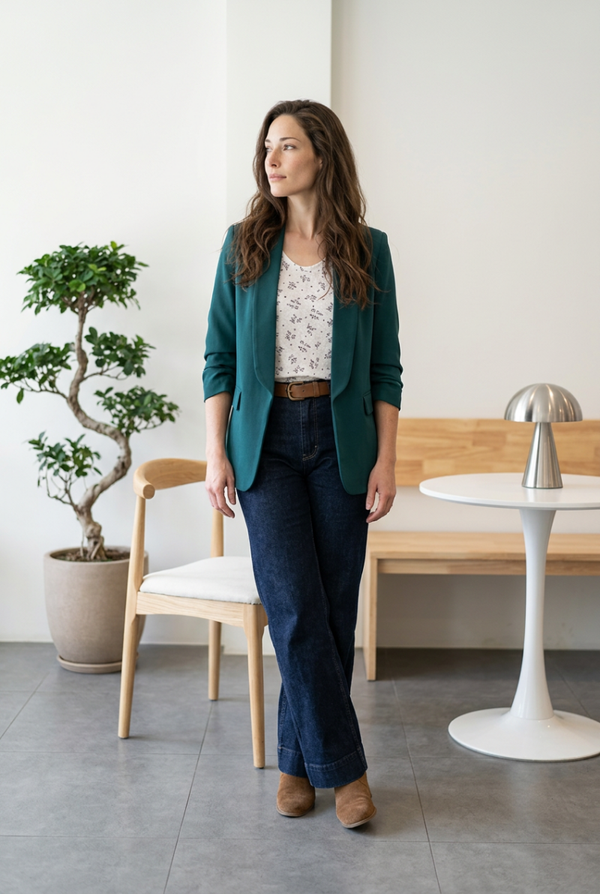 Blazer STYLE SMOKING fausses poches. Doublé. Manches retroussées.