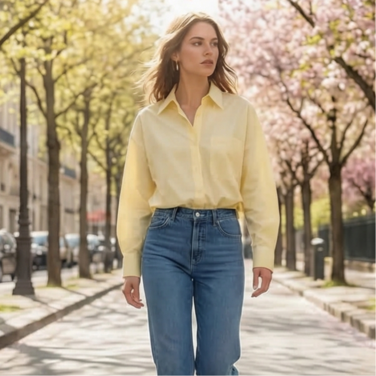 chemise courte oversize, coupe trapèze , grande poches poitrine.