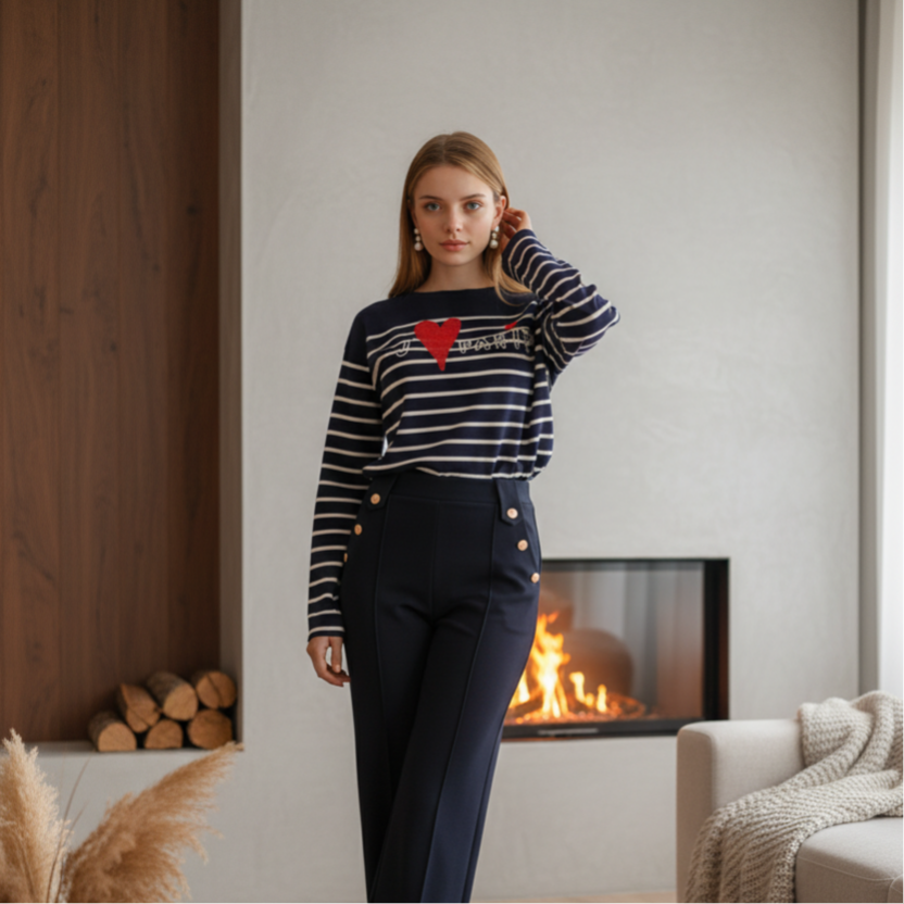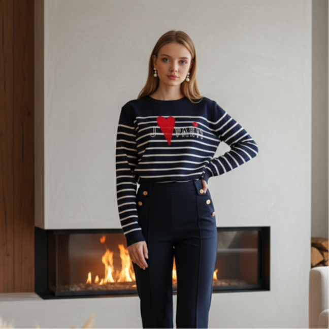 Pull imprimé j'❤️ Paris à rayures