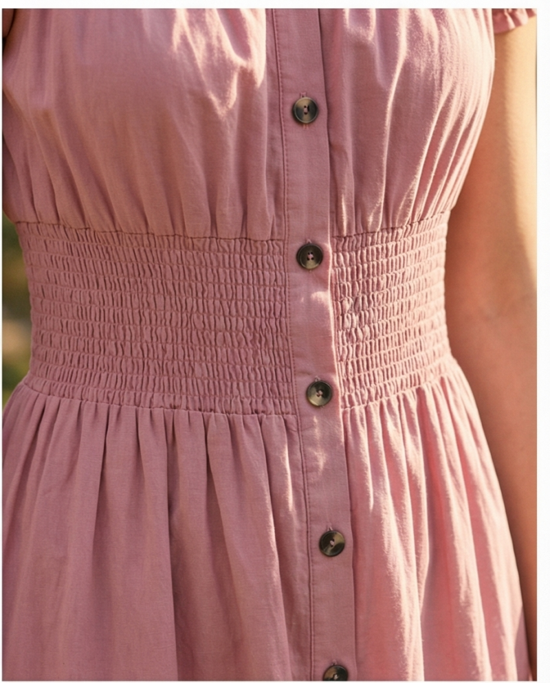 Robe légère unie smokée à la taille.
